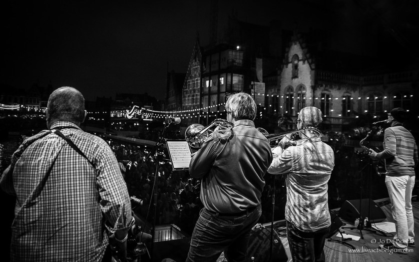 Zo ook vanavond waar een volgepakte Graslei werd getrakteerd op een spetterend muzikaal gebeuren waarin je ogen en oren tekort kwam om alles in je op te nemen. Over het hoge spelniveau durf ik zelfs geen verdere uitspraken doen, want je hebt hier écht te doen met muzikanten van internationale klasse en die kwaliteit druipt er vanaf ! Onder leiding van Frank Deruytter kregen we de volgende setlist geserveerd :1 Bounce