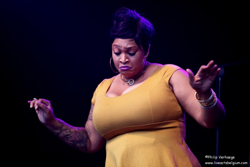 Het volgende hoogtepunt diende zich aan. Het was Jj Thames (lees haar verhaal, geschreven door Philip Verhaege in Back To The Roots, nr. 102). Ze is met voorsprong de nieuwe Mississippi blues en souldiva, daar moeten we geen woorden aan verspillen. Jj heeft een soulstrot die kan wedijveren met Aretha Franklin. Haar blues zit vol soul en haar soul zit vol blues en zo hebben we het graag! Jj was zonder twijfel het hoogtepunt van deze editie. Ze gaf een wervelende show met veel eigen werk en een tribute aan John Lee Hooker met ‘Boom, Boom’. Elk nummer was een genot voor de oor en oog. Met een magistrale, echt wel fenomenale versie van ‘I’d Rather Go Blind’ van Etta James, waarmee ze feilloos James’ versie aan het wankelen bracht, sloot ze haar set af! Het publiek schreeuwde om meer en dat kregen ze met een funky versie van de Temptations-klassieker ‘Standing On Shaky Ground’. Mijn dag kon niet meer stuk!