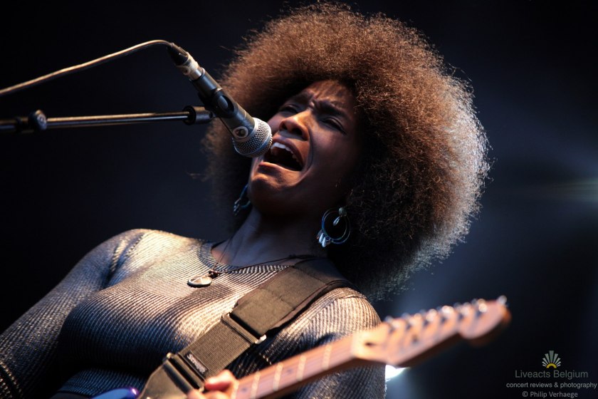 Het werd moeilijk om ons weg te rukken rond het podium want Melodie Angel bleek een meer waardige vervangster te zijn voor Jimmy Johnson. Deze 28-jarige schoonheid leerde we kennen in Chicago tijdens het Blues Fest. 2016. Melody Angel woont al heel haar leven in Chicago’s South Side. Ze werd geboren nabij 86th en Cottage Grove en groeide op in een hip-hop wereld met een grote affiniteit voor blues en rootsmuziek. Melodie komt uit een muzikale familie en leerde als autodidact gitaar spelen en songs schrijven. Rosa’s Lounge bluesclub werd haar thuishaven. Ze is zelfs ver familie van de legendarische Otis Rush (Otis is de vader van haar moeders neef). De langspeler ‘This Is America’ is een volgende stap in een nog prille carrièremove voor Melodie. Met een haast atletisch vermogen raast ze door haar setlist. Ze is een waanzinnig getalenteerde en gepassioneerde zangeres en haar gitaarstijl doet vermoeden dat ze zwaar van is van Jimi Hendrix en Chuck Berry. Haar set zat boordevol energie met nummers als ‘The Trouble Was Money’ en ‘Double Trouble’ ( een cover van Otis Rush).