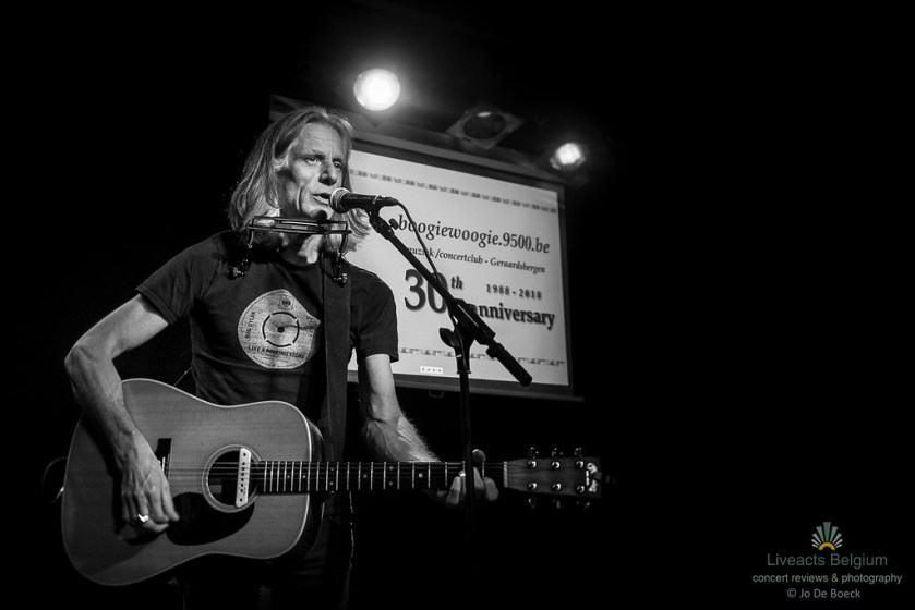 Na een uitgebreide soundcheck en persmoment, waarin het ganse jaarprogramma werd voorgesteld, was het aan The Scabs-frontman om in het volgepakt muziekcafé het eerste concert van het ’30 jaar BoogieWoogie’-project aan te vatten.