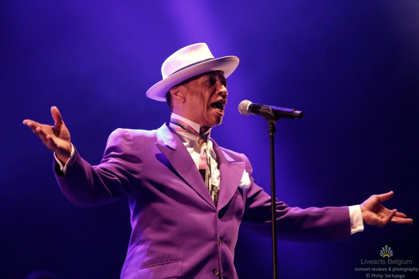 Kid Creole nodigde samen met zijn Coconuts, Leuven uit voor een groot salsa feest. The Coconuts, een sexy gekleed vrouwelijk trio, én een strakke ritmesectie, inclusief een driedelige blazerssectie, zetten meteen ‘Caroline Was A Dropout’ in de steigers. Kid Creole is bijzonder goed bij stem, fysiek nog steeds in bloedvorm en steekt rigide in een paars Zoot-pak. Hij zet zijn hoed schuin en continueert met hits als het smooth funky ‘Stool Pigeon’ en ‘No Fish Today’. De cabaretière en ritmische moves van zijn Coconuts influenceren ook Kid’s bewegelijkheid. Tijdens ‘Annie, I’mNot Your Daddy’ laat hij zich andermaal escorteren door het vrouwelijk schoon. Salsa, limbo, tango, merengue, conga en rumba…. alles zit verpakt in het showelement. Sessiedrummer Dave Imby, straight from Puerto Roco, kondigt Kid aan. Ware het niet dat Dave Imbrecht recht uit Nederokkerzeel komt. “I want to thank you for being myself”, dolt Kid en zet speciaal voor zijn x-vrouw, die gelukkig niet in het publiek zit, het reggae doorspekte ‘Gina Gina’ in. Hier komt Mark Anthony Jones in de spotlights met zijn opwindende gitaarriffs.