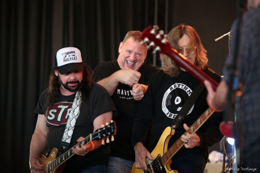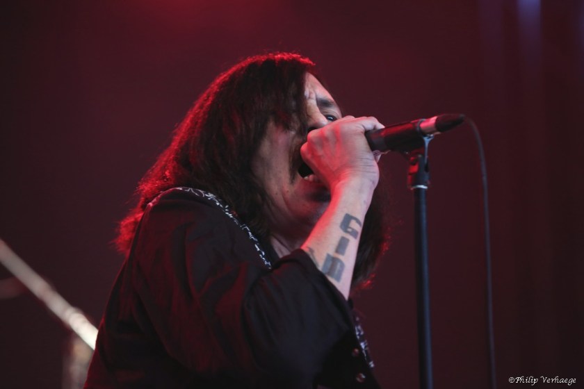 Tijd voor The Morlocks op de Roots Stage. Dé garagerockband uit San Diego, Californië en opgericht in 1984. In zijn eerste incarnatie bestond de band uit gitarist Tommy Clarke, bassist Jeff Lucas , drummer Mark Mullen, net als zanger Leighton Koizumi en gitarist Ted Friedman , beiden voormalige leden van de Gravedigger Five . Na de splitsing in 1987, hervormde de groep onder Koizumi met een andere line-up. De nieuw gevormde Morlocks omvatten Koizumi op zang, gitaristen Bobby Bones en Lenny Popsop, bassist Nic “The Canadian” en drummer Marky. Openen met ‘Sittin On Top Of The World’ om te vervolgen met highspeed versies van ‘Teeanage, Teenage’ en ‘Time To Move’. Lets’ rock, baby…