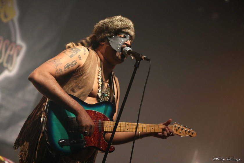 In de Roots Tent was het de beurt aan The Black Wizards. Portugese jeugdigheid. Strak, stoner rock en fuzzadelische grooves. De band explodeerde eind 2015 op het toneel met hun debuut ‘Lake of Fire’, gevolgd door de EP ‘Fuzzadelic’ en het tweede veelgeprezen album ‘What the Fuzz!’. Het enige vrouwelijke gezelschap van de band is zangeres Joana Brito. Haar timbre slingerde zich moeiteloos tussen de ritmesectie van gitarist Paulo Ferreira, drummerster Helena Peixoto en bassist João Mendes. Met een intense explosie van emoties en heel wat een stevige fuzz waren songs als ‘Kaleidoscope’, ‘Reflection’ en vooral ‘I Hope You Know’ waren culminatiepunten in de set. Joana speelt gretig met haar wah wah pedaal, zonder in overdrive te geraken. Heerlijke fuzzadelic…