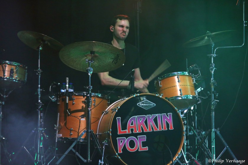 Voordat de Lovell-zusjes het podium sierden mocht singer-songwriter Ryan McMullan zich in ruim een half uur van zijn taak kwijten. En dat deed hij met brio. De sympathieke McMullan is afkomstig uit Portafery, een kleine badplaats in Noord-Ierland. Ryan deelde het podium met zijn gitaar én had voor de gelegenheid keyboardvirtuoos Danny meegebracht. Hij wist meteen zijn publiek te charmeren met de swingende openingssongs ‘Holding Me Down’, ‘Time To Make A Change’ en het country getinte ‘Another Minute’. Bedankt om zo vroeg te komen, dolde Ryan. Of was het enkel om een mooie plekje te bemachtigen voor het podium. Gezwind zette hij de single ‘Bowie On The Radio’, uit de release ‘Rebellion’ en met zijn ‘Heroes’ intro in de steigers. Toen hij voor een tijdje naar Australië trok pende hij voor zijn ouders het emotionele ‘Letting Go For A Little While’, Maar ook de folky ballade ‘Belfast City’ en het geaccordeerde ‘Oh Susannah’ konden meer dan bekoren. Ryan McMullan is een charismatisch muzikant en een zeer begaafd songsmid die niet aarzelt om zijn kwetsbaarheid te tonen door middel van betekenisvolle teksten en emotionele uitdrukking. De akoestische set was een verrassende manier om makkelijk in de woeste gitaarklanken te komen van Larkin Poe.