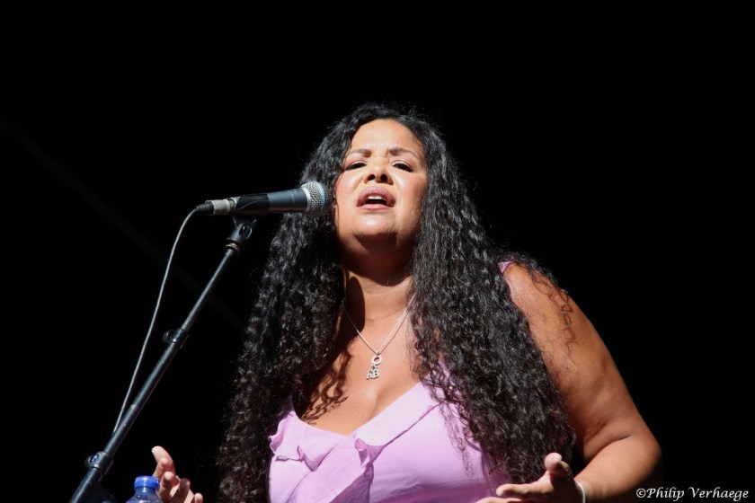 Blues en souldiva Kyla Brox was de terechte winnares van de European Blues Challenge 2019 op de Portugese Azoren. ‘The finest female blues singer of her generation’, had als winnares van de UK Blues Challenge 2018 dus ook de eer om haar thuisland tijdens de 2019 International Blues Challenge in Memphis te vertegenwoordigen. Kyla is de dochter van Victor Brox en begon met zingen in zijn destijds populaire band The Aynsley Dunbar Retaliation. In 2016 had Kyla dan een bescheiden succes met haar debuutplaat ‘Throw Away’. Het conveniënt gitaarwerk van Paul Farr, de geïnspireerd baslijnen van Danny Blomeley en de strakke drums van Mark Warburton vormt de ideale ritmesectie. De ballade ‘Pain & Glory’, stond al vroeg in de set en is de titeltrack van haar release uit 2019. Brox divergeert met boogienummers als ‘Bluesman’s Child’, een ode aan haar pas overleden vader en de bluesstandaard bluessong ‘3 6 5’, dat meteen ook een eerste sing-along song werd in Wespelaar. Met haar immens stembereik zet Kyla ook ‘Beautiful Day’ in de steigers. Blues, een dosis funk, heel wat soul en gospel zijn haast accuraat in haar set. De toon was gezet voor wat een fijne dag boordevol gave muziek zou worden.