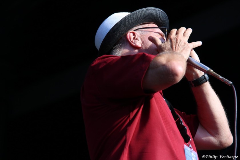 Een subtiele combinatie van frasering en resonerende interacties. Zo ook hier in Wespelaar op een vroege en zonovergoten middag, en begeleidt door het Finse Tomi Leino Trio. Kan er nu echt niet eens wolk voor de zon komen, vraagt Hummel zelf laconiek. Maar Hummel en soulmates presenteren een divergente set. Het gaat van de West Coast met nummers als ‘I’m Hooked’ uit 1977, ‘Blues Stop Knockin’ (At My Door), origineel van Al Ferrier én verstedelijkte Chicago blues met ‘Double Trouble’, gecrediteerd Otis Rush. Hij bewierookt zelf de Britse bluesboom met Peter Green’s ‘Stop Messin’ Around’. Mark Hummel & Band, dat is een garantie voor een opwindende taste van klassieke Chicago/West Coast/Jump Blues.