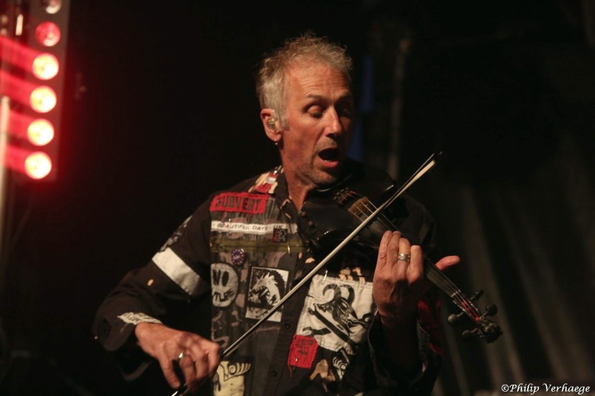 Met die hypnotiserende gitaarriffs van ‘Dirty Davey’…. “Davey’s got the police on his back and keeps on getting arrested by them, as they see him as a habitual troublemake”…kon het mospitten eindelijk beginnen. De sound van de Levellers raakt nooit gedateerd en met ‘The Cholera Wall’ uit de langspeler ‘Letters From The Underground’ uit 2008 en ‘Riverflow’ trokken we naar het einde van de reguliere set.Uiteraard volgde er een bisronde met de zeldzame ballade ‘Another Man’s Cause’, de swingende hit ‘Fifteen Years’ en ‘What A Beautiful Day’ bracht het publiek, van wie er een aantal shirtloos waren, in een nakend delirium. Bij de Levellers voel je nog steeds die doorleefde muzikale geschiedenis. Levellers, epische proporties van Celtic folkpunk!