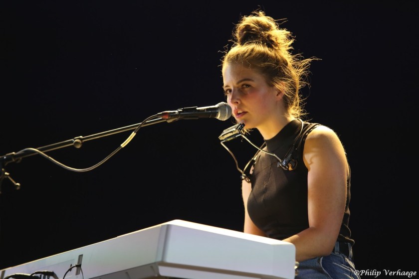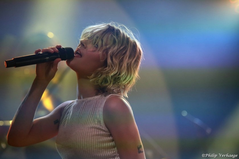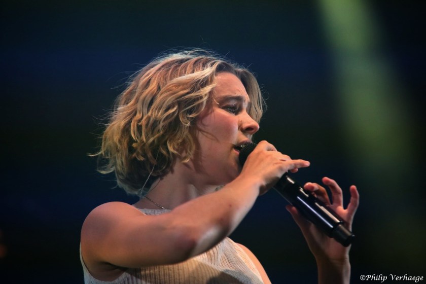 ‘Kleine Tornado’ werd dan ook een emotionele pianoballade. Het is Pommelien niet gelukt om voor de zomer gitaar te leren spelen, ze maakt dan graag en handig gebruik van ‘elektrische loops’ in songs als ‘Mensen Zoals Jij’. ‘Roekeloos’ was een nieuw nummer, en met ‘Wat Een Idee!?’ sleepte we ons naar het einde van de reguliere set. De bisronde werd ingezet met ‘Het Beste Moet Nog Komen’ en ‘Ongewoon’, haast onherkenbaar door het meegebrul van talloze tieners. Pommelien Thijs een brok energie in Zottegem….