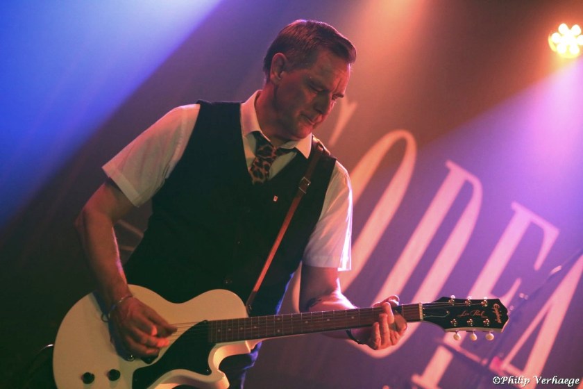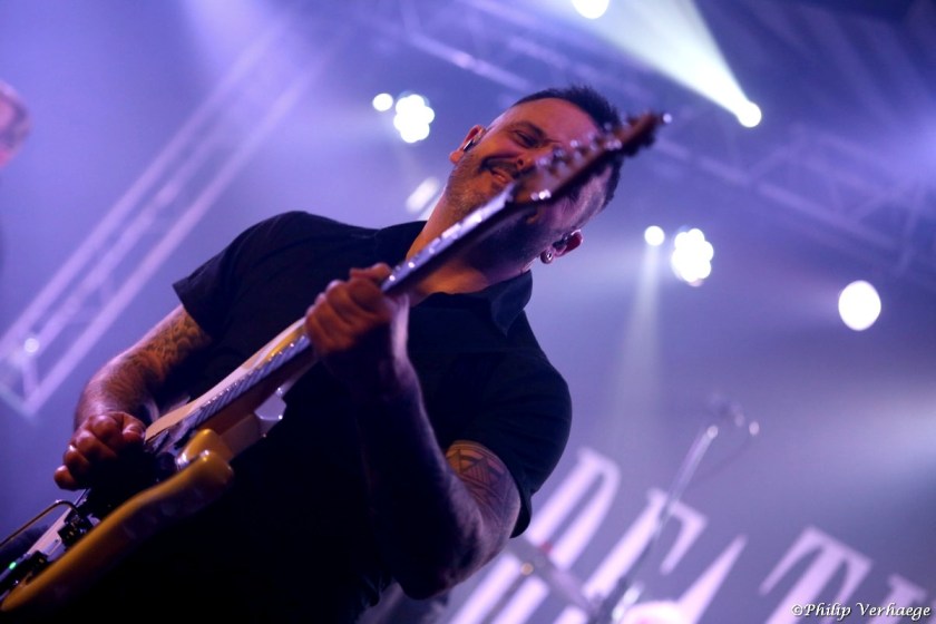 The Godfathers zijn nog steeds die invloedrijke formatie. Na heel wat personeelswisselingen zou het onfatsoenlijk zijn om de huidige line-up niet te noemen. Een line-up die nu al een paar jaar bij elkaar is met zanger Peter Coyne, bassist Jon Priestley, drummer Billy Duncanson én gitaristen Richie Simpson en Paul Humphreys. De John Barry intro is gebleven en ook de krankzinnige en politiek getinte openingssong ‘This Is War’, die naadloos overging in ‘She Gives Me Love’ en het opruiende ‘OCD’ zijn vaste certitude in de setlist. Coyne lijkt tevreden met de response én ‘If Only Have Time’ en ‘Tell Me Why’ hadden een pop-feeling door die coole samenzang. En toen ging het hard met ‘Lay That Money Down’, uit de langspeler ‘Alpha Beta Gamma Delta’. Coyne, met dat East End imago sluipt over het podium, kijkt gebelgd naar zijn publiek en blèrt zich een weg doorheen zijn nummers, songs die vol hooks en gitaarriffs staan.