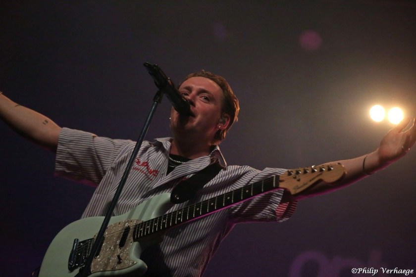 Only The Poets, een Engelse poprockband met miljoenen streams, vaak spelend voor uitverkochte zalen. Ze hebben een plek veroverd als dé band voor wie muziek meer is dan alleen maar een luisterervaring. Het is ook vaak een ontwikkeling van verbinding en even ontsnappen aan het dagelijkse leven. Laten we maar meteen met de deur in huis vallen om niet steeds in herhaling te vallen. Ieder nummer werd vanavond luidkeels meegezongen, geneuried of handgeklap begeleidt. Dit door een meute jonge joelende wolvinnen, zij die waarschijnlijk nog even wilden ontstressen voor de examen nervositeit toeslaat. En die merchandise stand, ook die werd al even snel overrompeld.