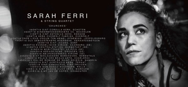 SARAH FERRI & STRING QUARTET: “CHURCHES TOUR – AUTUMN 2018” Voor haar album ‘Displeasure’, bejubeld met 4 sterren in de Standaard, pende Ferri eigenhandig haar